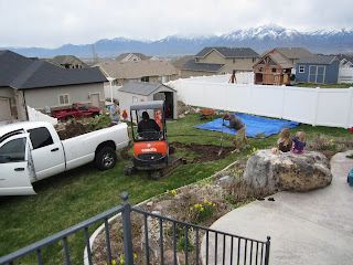 Luckily we have some great friends on our street that have access to a lot of trucks and cool machines that helped us dig this huge hole!! Living in Herriman up on the mountain we have a lot of rocks...and digging the hole was a lot harder and took a lot longer than we thought! But thanks to great friends we got the majority of the hole dug on that Saturday!